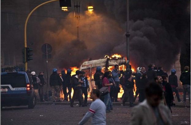 Si è lasciato che la capitale del paese fosse messa a ferro e fuoco da qualche centinaio di idioti e violenti che pensano di cambiare il mondo a sprangate.