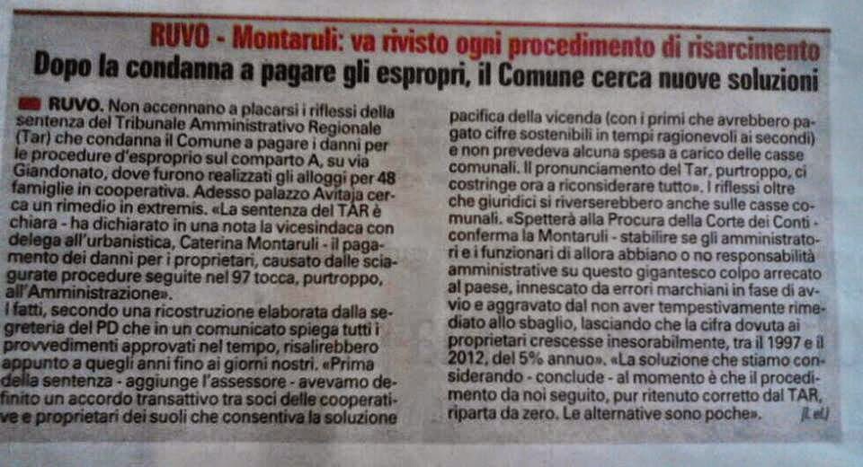 Dopodiché il colpevole-secondo-il-Tar convoca una specie di riunione segreta (perché hai voglia a dire: ma di fronte alla possibilità di dover pagare di persona, certa gente ha una strizza matta), riunione di cui peraltro siamo perfettamente a conoscenza perché a Ruvo le riunioni “segrete” si fanno per farlo sapere – una riunione proprio con i massimi interlocutori dell’amministrazione in carica.