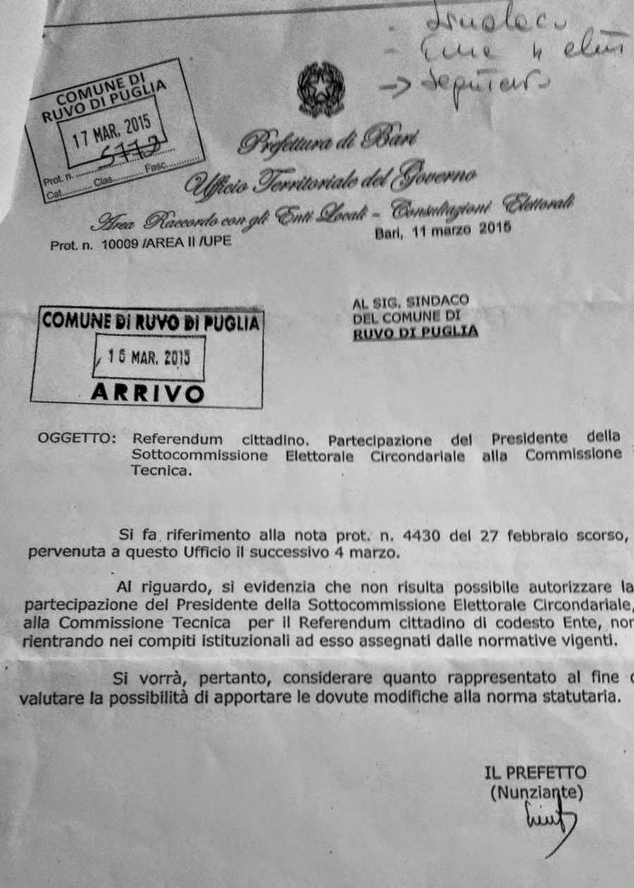 Prima gli chiedono un funzionario per fare la Commissione referendaria.