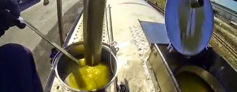 Questa crema gialla è olio tunisino congelato, arrivato nel porto di Livorno dalla Spagna dopo essere stato miscelato in Portogallo, e destinato a un noto oleificio toscano.