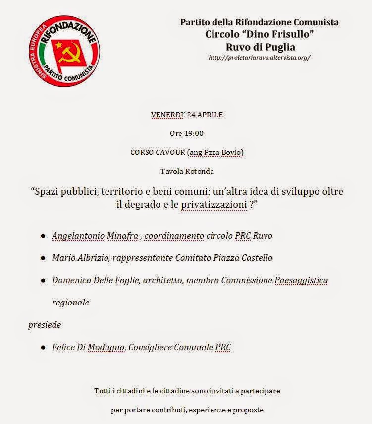 - Angelantonio Minafra , coordinamento circolo PRC Ruvo