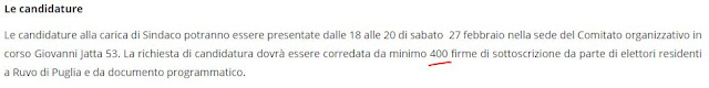 Ce ne vogliono 200 per chiedere un Referendum cittadino a norma di Statuto (casomai conosciate queste parole). E 400 per un solo candidato alle primarie farlocche?