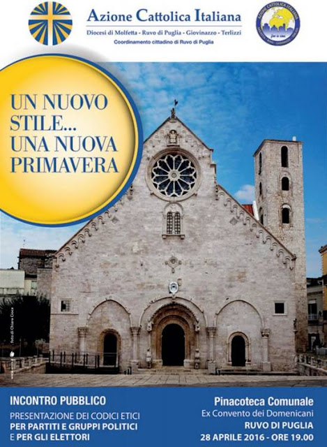 Incontro Pubblico indetto dall’Azione Cattolica in occasione delle elezioni comunali che si terranno a Ruvo il prossimo mese di Giugno.