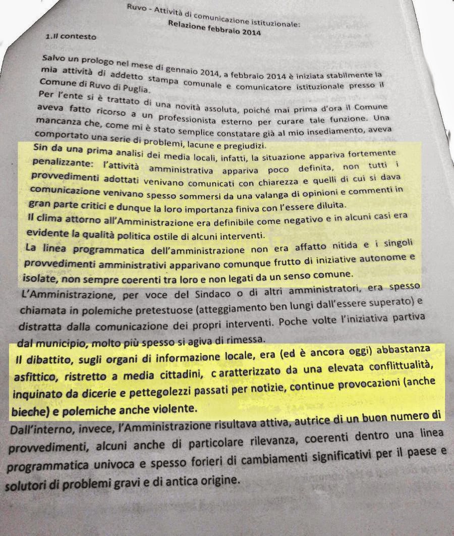 Non sono neanche sicuri di prendere il consigliere. Hanno chiamato a raccolta ex ceto dirigente della sinistra ruvese ma la lista non è fortissima, la candidata di punta è Lia Caldarola su cui [OMISSIS] farà convergere tutti i voti