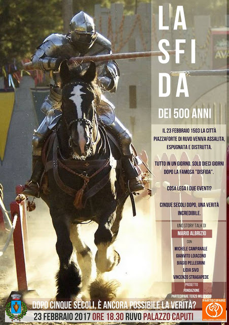 Cinque secoli dopo, una verità incredibile. Il 23 febbraio 1503 la città piazzaforte di Ruvo veniva assalita, espugnata e distrutta. Tutto in un giorno. Solo dieci giorni dopo la famosa “Disfida”. Cosa lega i due …