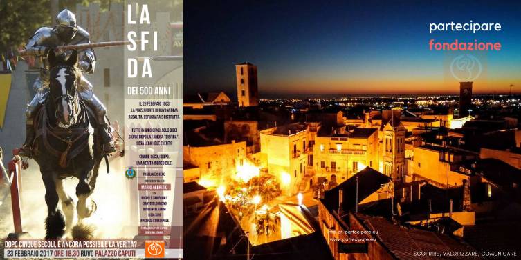 La vera Disfida, dopo cinque secoli All’alba del 23 febbraio 1503, tutta la popolazione ruvese arrivò stremata. E non era certo per la stanchezza della così detta Disfida, combattutasi secondo la leggenda solo 10 giorni prima. …