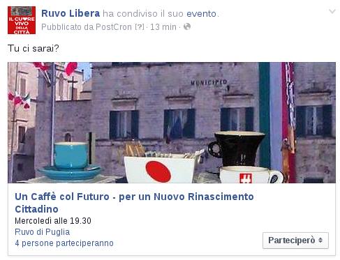 Oggi Ruvo RiComincia.Ora 19.30. Caffè ’79 Umberto Affatato Pronti a cambiare Ruvo? Stasera inizia la sfida tra chi vuole bene al paese e chi invece l’ha distrutto!! Ruvo Libera